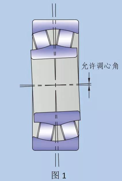 調(diào)心滾子軸承的設(shè)計,令其具有自動調(diào)心功能,即軸承本身可調(diào)節(jié)內(nèi)、外圈間的角度對準誤差。在正常載荷及工作條件下,內(nèi)圈轉(zhuǎn)動時,容許存在右表中給出的不對心值。